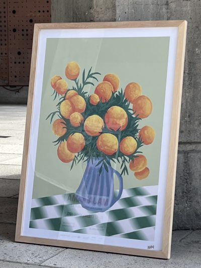 En este contexto, presentamos una selección de nuestros prints y obras enmarcadas, exhibidas en un soporte metálico minimalista, diseñado especialmente para dialogar con el espacio y resaltar las piezas. Nuestra propuesta busca tensionar lo funcional y lo estético, ofreciendo obra accesible sin perder identidad ni fuerza visual.